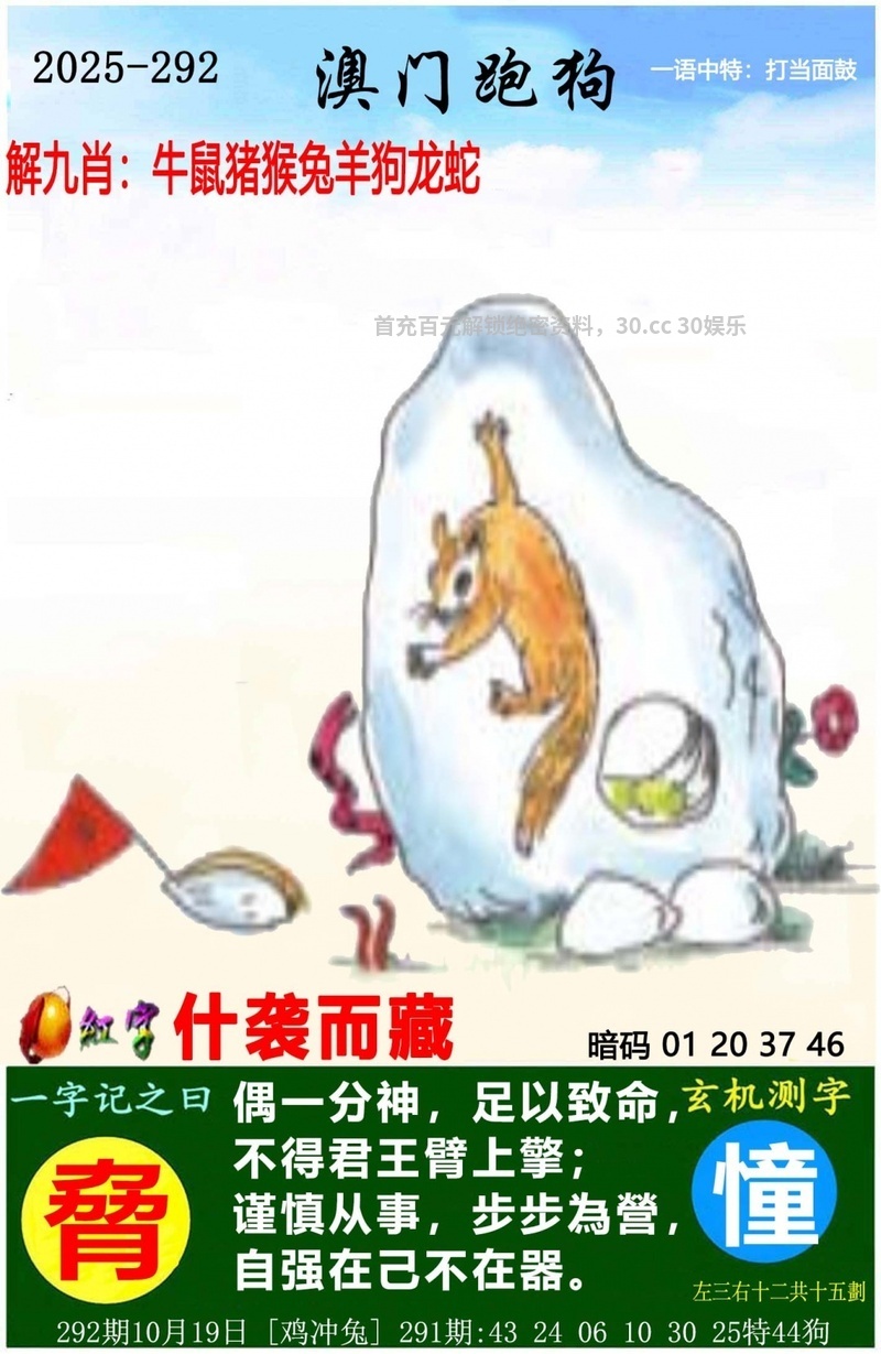 291期:九肖 | 鸡蛇兔牛虎马龙狗羊 | 狗44中 |