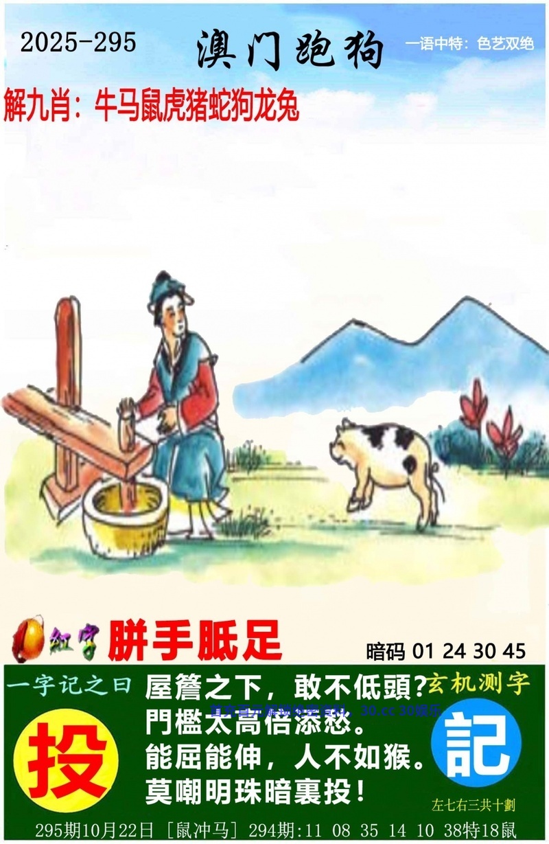295期:九肖 | 牛猴虎猪鼠马兔狗龙 | 牛05中 |